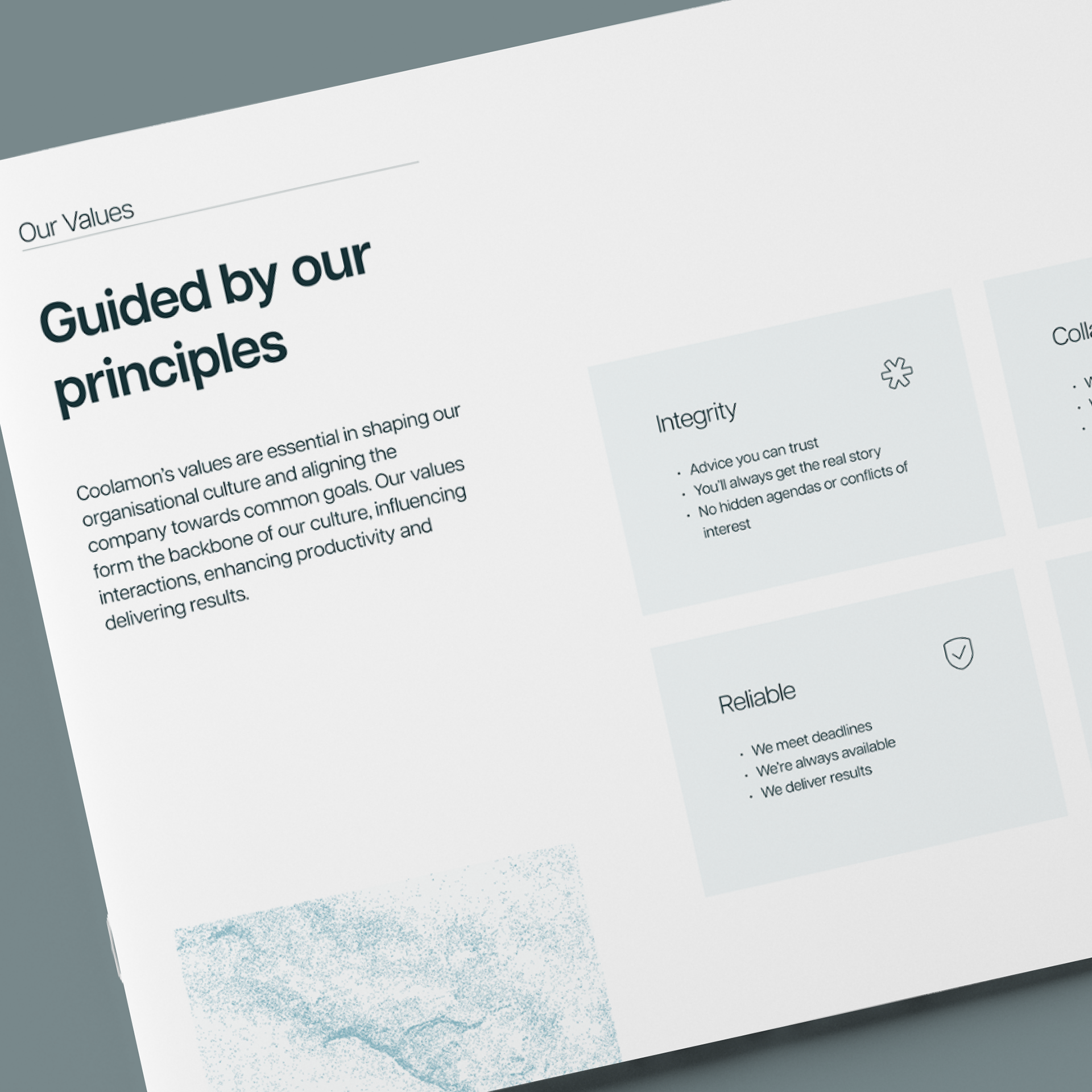 When crafting the branding for Coolamon, we worked closely with Sam and Bennett to understand who they were and what they wanted the business to represent. The guys put a lot of work, experience and thought into their work, and wanted a brand that would convey this technical precision, as well as reflect the strength of their experience. We then took inspiration from the built environments that they work with, using interested textures that give the brand depth.